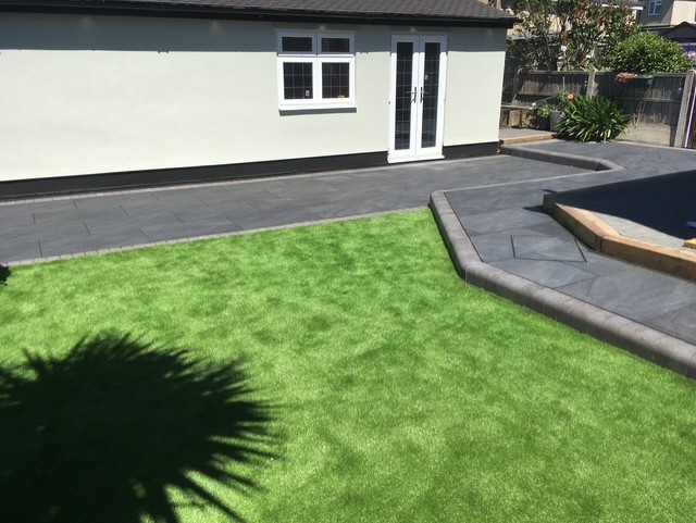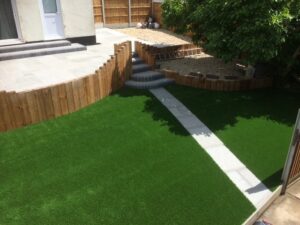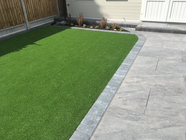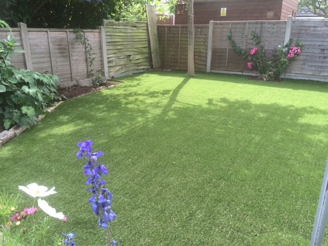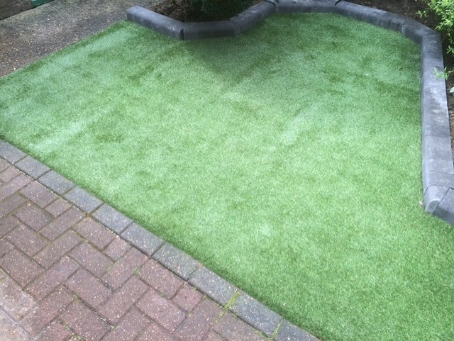 We have supplied & installed many Artificial Grass projects over the last 10 years. All different shapes & using all kinds of different finished pile heights. Some designs have been very basic & other designs have been intricate. You will see from some of the pictures that there are outside edges that can enhance the look of the Artificial Grass. Again the outside edging material can create a good balance of colour change & make the grass stand out. In deciding what OR if you wish to have an outside border OR whether it remains a flower bed.